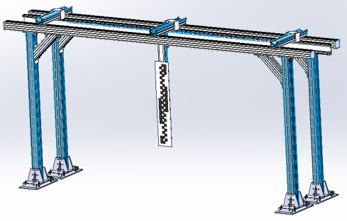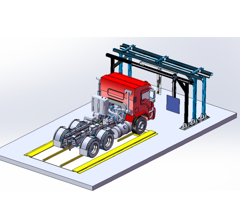 設備軸距可調,在車身進入校準工位前,通過掃描隨車文件上的車型VIN條碼識別車型信息並自動調整軸距。