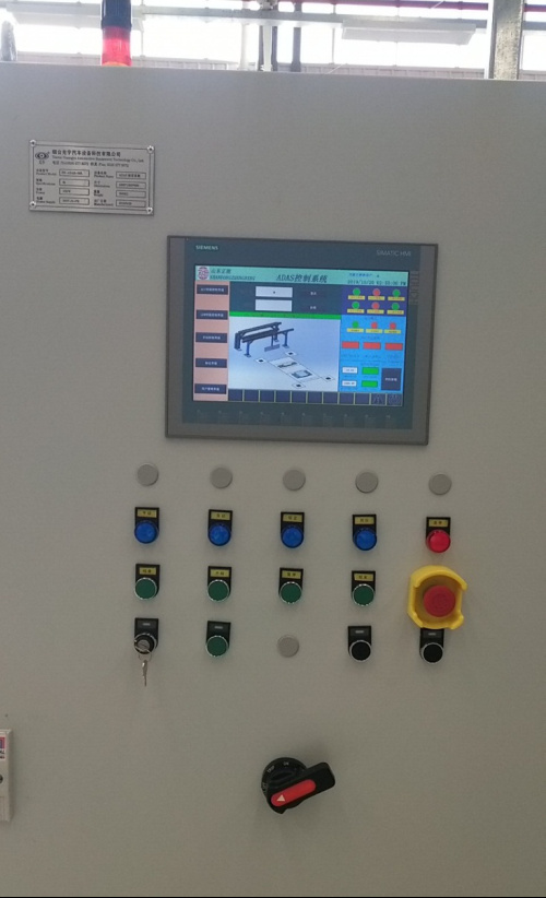 校準過程是確定車載攝像頭的三個方向角(相對於車的行駛方向)和攝像頭的安裝高度(相對於車輛的輪胎接觸麵)。這個校準過程是一種電子調節,攝像頭不需進行機械調節。設備係統由擺正器、標定設備、標定板、標定診斷儀、PLC控製櫃、LCD顯示屏組成。